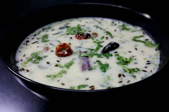 Gujarati kadhi is a Gujarati version of kadhi. It is a very popular Gujarati dish made from buttermilk or dahi and gram flour. Kadhi is an essential part of Gujarati cuisine.