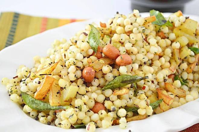 Sabudana khichri is an Indian dish made from soaked sabudana.