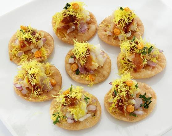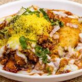A popular Mumbai street food, Sev Puri is a sweet, spicy and tangy chaat. Sev Puri is made with crispy puri (whole wheat crackers) topped with potatoes, onions, tomatoes and a variety of chutneys, and finished with sev